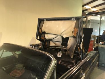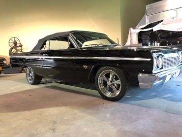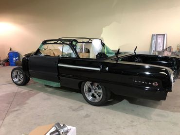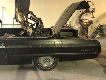 Russ came to us with a very beat up car smelling of rats and cats. It was also missing a drive train, most of the interior, and the top was shot. Russ wanted to restore the car, and we knew we could make his Impala great again. We started the project with masks and gloves. We ended the project with a great friend and a beautifully restored 1964 Impala SS convertible!